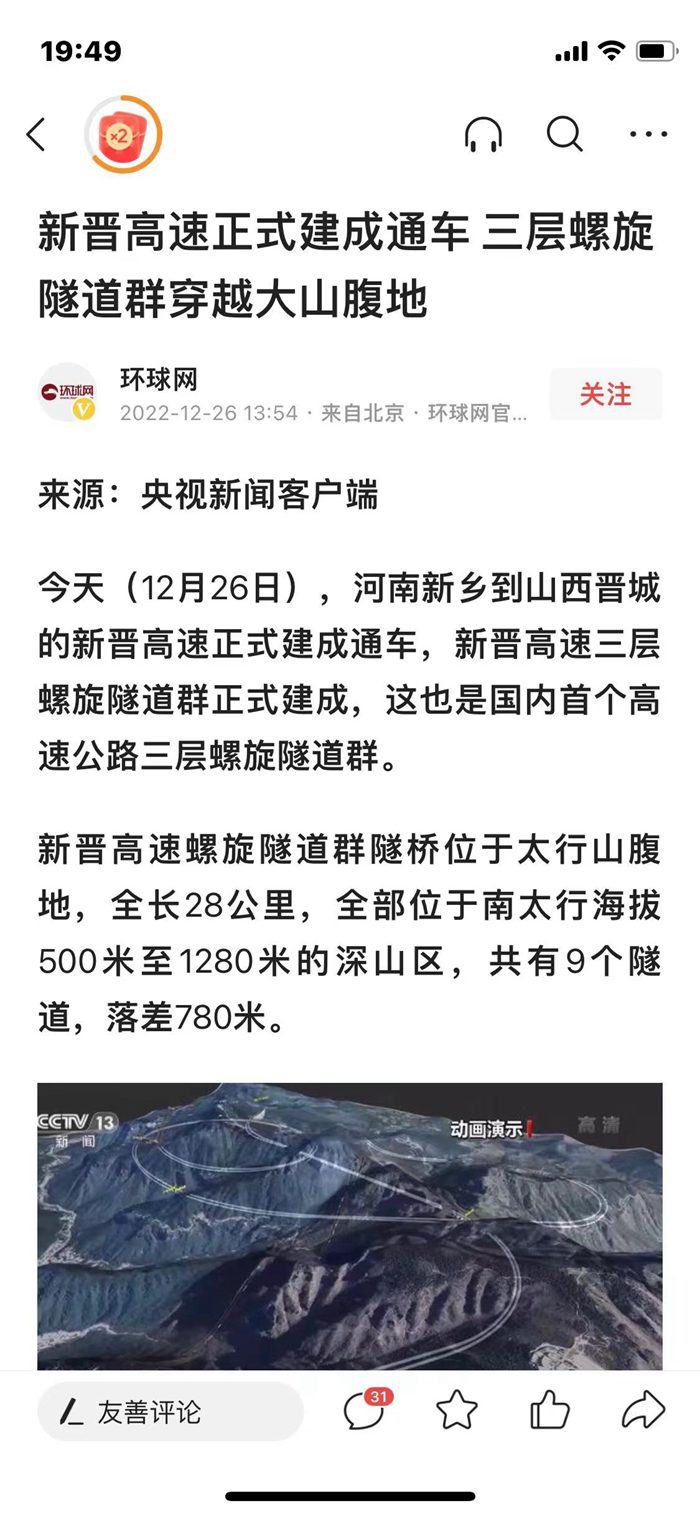 2022年12月26日河南新鄉(xiāng)到山西晉城的新晉高速正式建成通車(chē),新晉高速公路三層螺旋隧道群正式建成,這也是國(guó)內(nèi)首 個(gè)高速公路三層螺旋隧道群。其中韓口隧道、南湖隧道、轎頂山隧道、蒿坪隧道、白楝樹(shù)隧道二襯臺(tái)車(chē)均由本公司定設(shè)計(jì)制作。